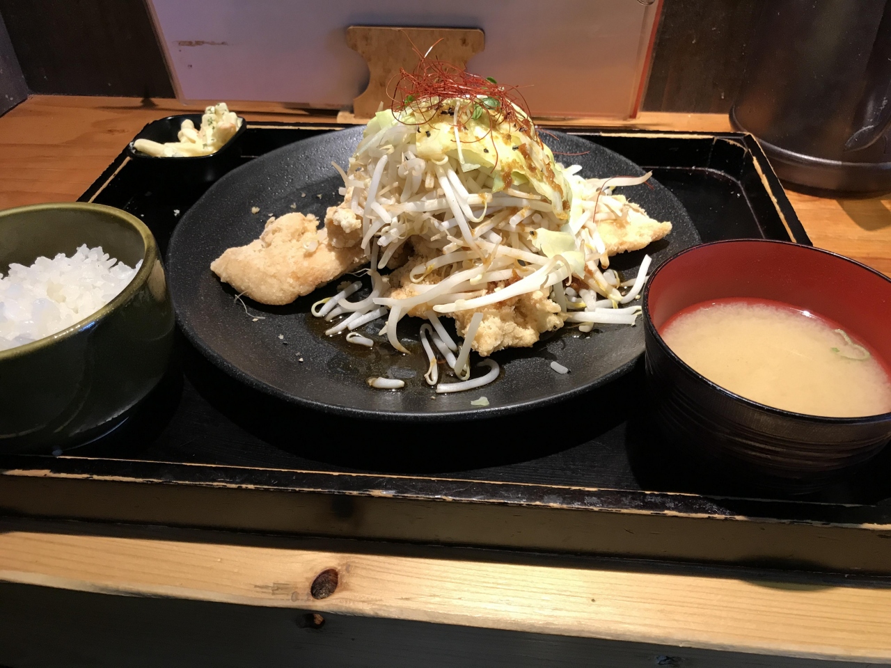 からせんで有名なお店です。リーズナブルな価格で大きな唐揚げや山賊焼きが楽しめます。何度か通って見つけたお気に入りがターザン定食です。もやしのシャキシャキ感とニンニク風味のタレがしみ込んだジューシーなからあげがミックスしています。