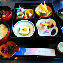 兼六園観光後にランチで利用。1階がお土産屋で2階が食堂になっています。ツアーバスのランチどころになっているようで、訪問したときにも30人ほどのツアーの方が食事をされていました。私達は、事前購入していた「金沢美味クーポン」で¥2000の会席膳をいただきました。娘いわく、お刺身が新鮮でとても美味しかったそうです。