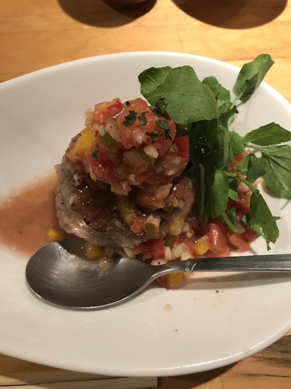 選べるソースの中から、サモサソースを選択しましたが、友人が食べていた醤油ベースの方がハンバーグの味がしっかりして美味しかったです。