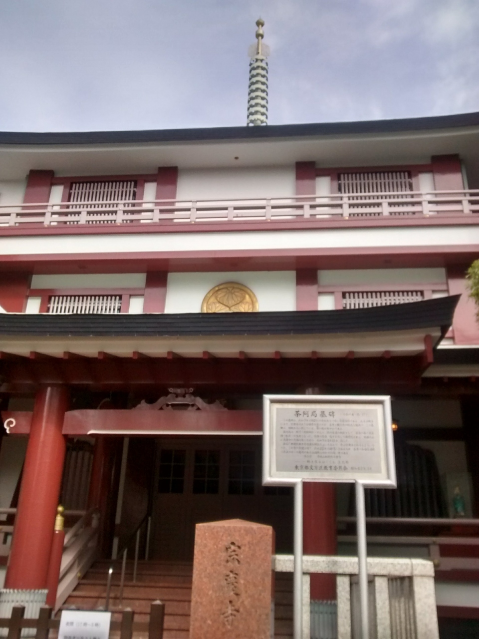 茶阿局墓碑 (宗慶寺内)は、文京区の桜の名所として有名な播磨坂から直ぐで、赤と白の壁が華やかな立派な高い建築物が必見です。播磨坂周辺には、他にもたくさんの史跡が多くて、散策するのに最高です。難点は坂が多いことです。
