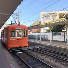 愛媛県の松山市内を走るオレンジ色の可愛らしい電車です。160円でどこまでもいけるので、松山城や坂の上ミュージアム、道後温泉などどこに行くにも便利です。