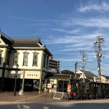 松山市内を走る伊予鉄道の路線を走る可愛らしい電車です。
