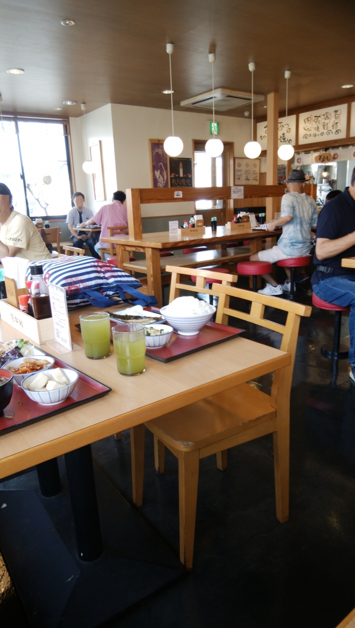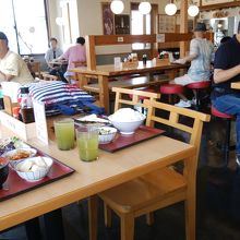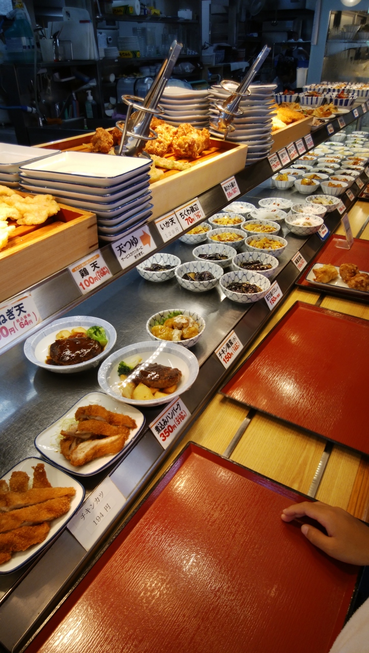 祝日12時半で混んでましたが回転が速く直ぐにテーブル席が空きました。トレイを持って小鉢や一皿料理がたくさん並んでいるのを目移りしながら選んで最後に会計するセルフのカフェテリア形式です。値段安く食事できます。