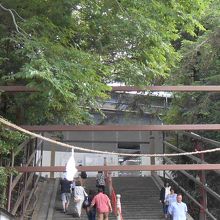 吉備津神社、入口階段を上ると、北随神門。屋根張替え工事中でした。
