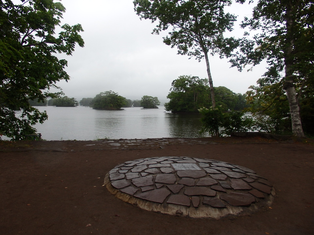 蝦夷駒ケ岳登山を途中、雨と濃霧により、登山をあきらめ引き返す。午後は自由行動となり、大沼湖を散策する。大沼湖は蝦夷駒ケ岳の火山活動でできた湖で大小81個の島があります。島巡りの路、大島の路、森の路の3つの散策コースがります。島と島を橋で繋いだ周遊コースになっています。雨は上がりましたが、雲が厚く、素晴らしいと想像される風景が冴えません。曇っているので、駒ケ岳も見えません。「千の風になって」名曲生誕の碑がありました。花はスイレンとハマナスのみでした。駒ケ岳は雨と霧のため途中で引返す、大沼国定公園も曇りで芳しくなく、花も少なく、気分が晴れない一日でした