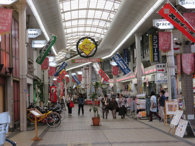 阪急宝塚線池田駅の北口駅前から始まるアーケードがある商店街、駅に近い方が一番街でその先が二番街になっています、今回ほんまち通り商店街にある落語みゅーじあむに行く為往復歩きました、商店街にはカフェや飲食店と普通のお店がならんでいます、今どきの商店街で人も少なくシャッターが閉まったままのお店もあります、通り沿いには落語みゅーじあむの旗が並んでいました。