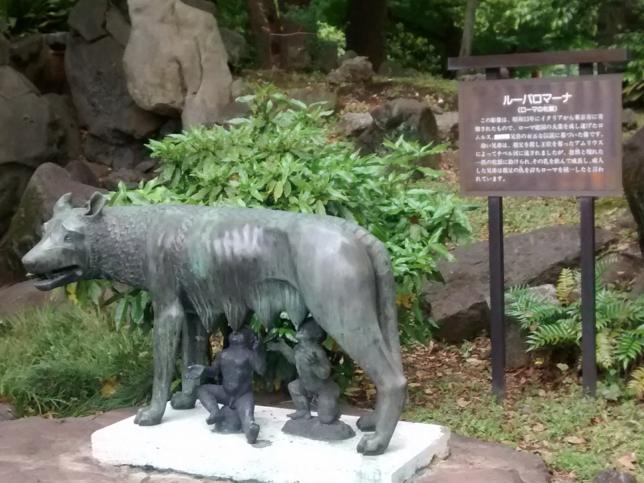 日比谷公園 ルーパ ロマーナ像は、銅像や碑が数多くある日比谷公園の中で特に興味深いものです。オオカミによって授乳されている2人の赤ん坊の姿がたいへん生き生きと表現されていて、超おすすめの観光アトラクションです。