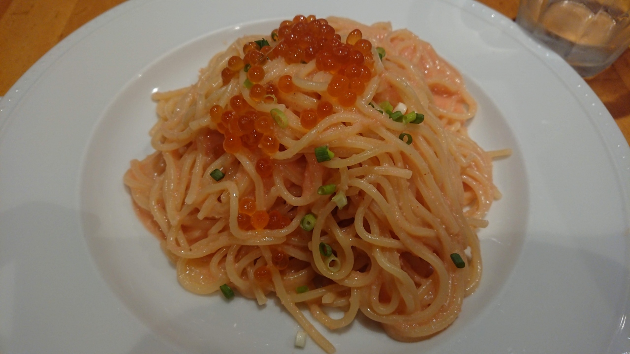 大手町ビル地下2階にあるイタリア料理店。現在、周囲の地下街が改装中ですが、この店は開店しています。この日はランチで利用。明太子といくらのパスタを注文しました。麺はもちもちとしていて弾力がありおいしかったです。