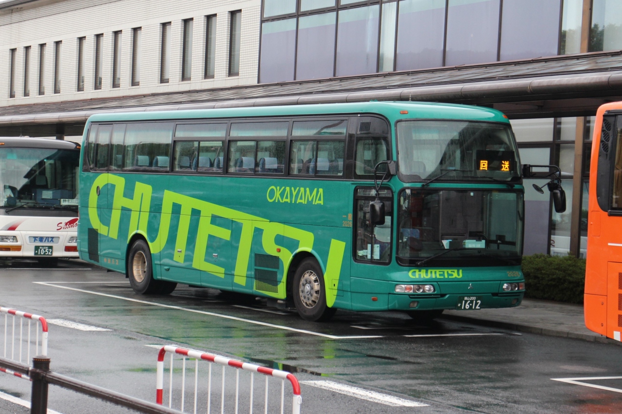 岡山駅~岡山空港間は中鉄バスに岡電バス、倉敷駅~岡山空港間は中鉄バスに下電バスが運行している。いずれも比較的新しい車両が使用され快適だが、飛行機接続運行のため便数が限られるのが難点。バス会社を選んで乗車する余裕はないが、岡山空港アクセスとして重要なアクセス手段。