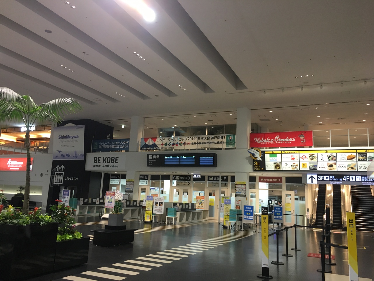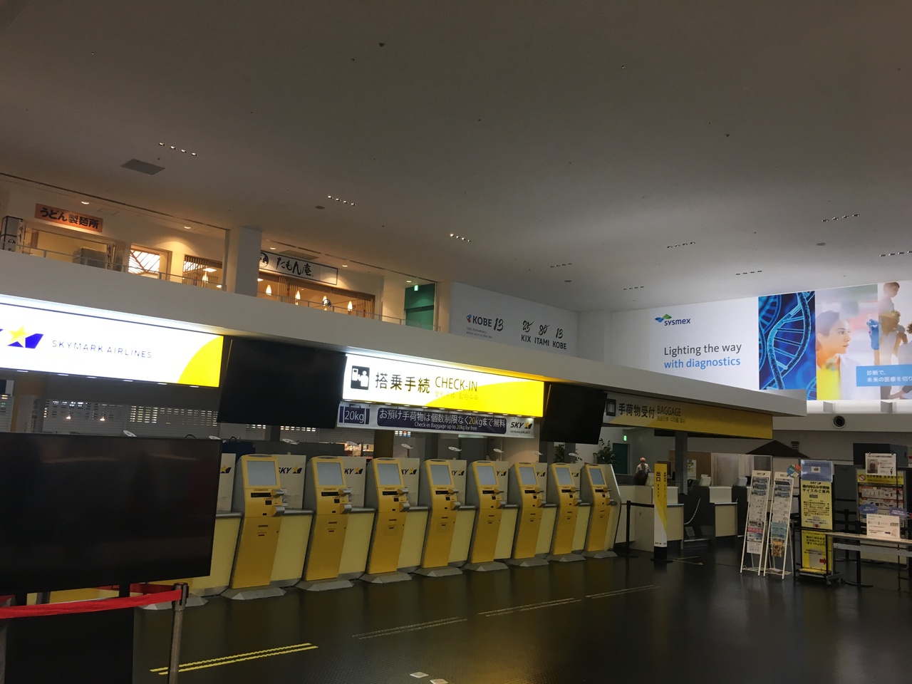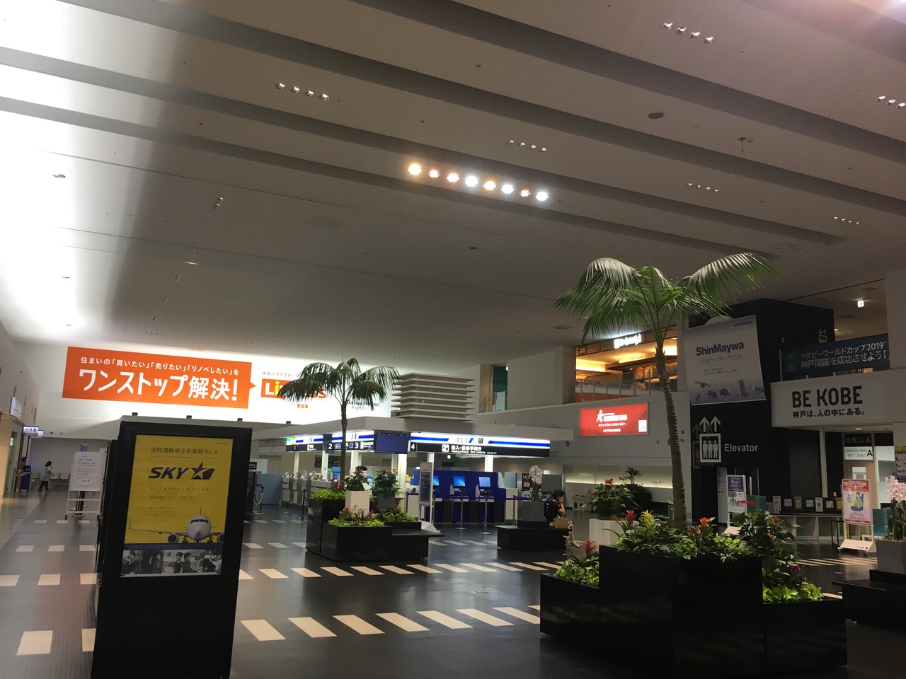 ターミナルの規模だけなら地方の県庁所在地の空港と同じくらいです。フライトの多くがスカイマークの小型機で伊丹や関空と比べようもないですが、出発ロビーのすぐ隣にポートライナーの駅があり20分程で中心街の三宮に直結して非常に便利です。