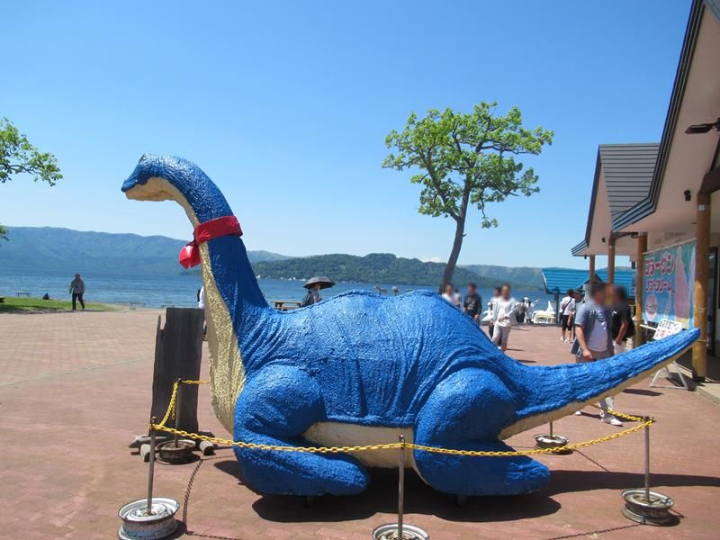 以前話題になったクッシーのオブジェが湖畔にありました。