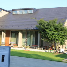 建物の前の芝生が青々として綺麗でした