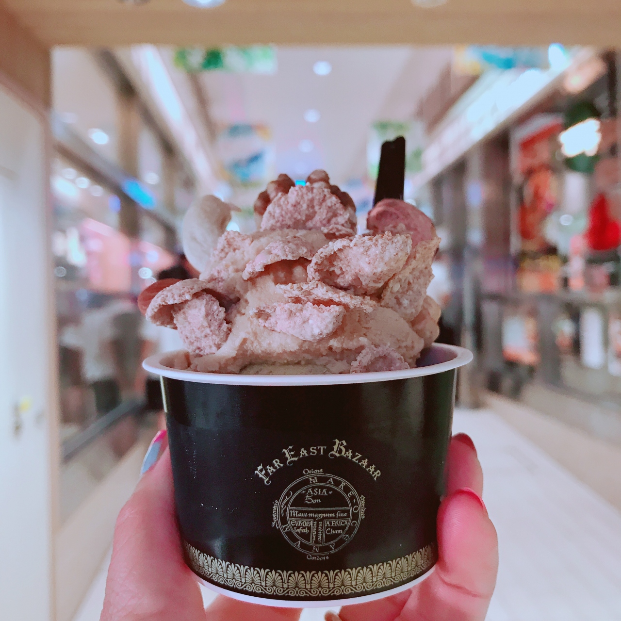 前から気になっていたドライフルーツやナッツのお店です。ジェラートがあると聞いて今回はジェラートを購入。トッピングしてくれるナッツがおいしいのです。そしてピスタチオのジェラートも味が濃くて素材が生きています。イートインもできる。