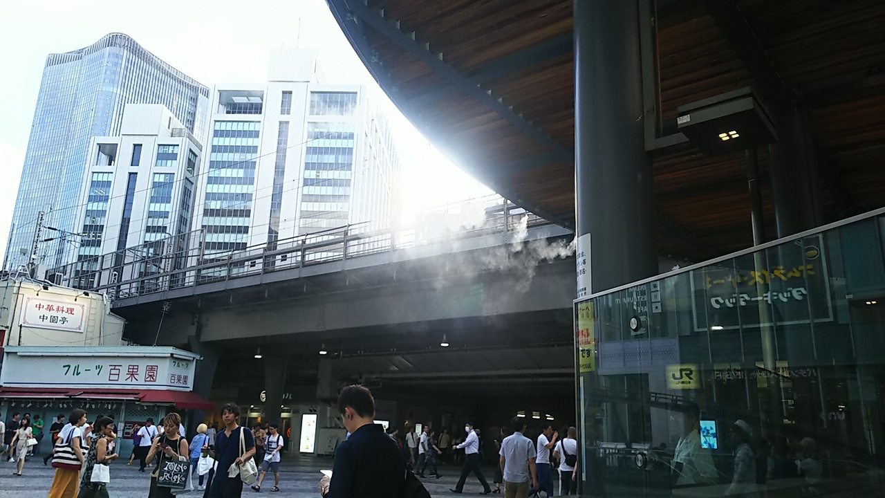 交通会館マルシェと有楽町駅前銀座口広場の天井からスモークが出ています!
