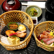 山居倉庫の入り口にある 私は松花堂弁当を食べたが,若干値段が高いものの,種類も多く,まあまあのボリュームで満足.込んでいるとやや注文取りや,配膳が遅くなる感じ.少々ウエイトレスさんがのんびりしている.私は松花堂弁当 2700円 竹かごいずめこ膳 1620円 浜直送お造り膳 1998円 車運転しないのでビールを飲める 648円 まあ観光地のレストランとしては合格の範囲だろう