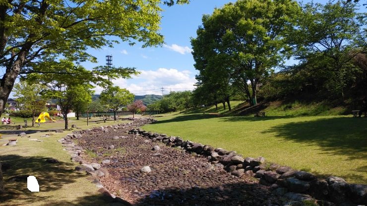 中心に川が流れており親水公園のよう。広大な芝生ではのびのびとスポーツを楽しめる環境。街中にありながらゆったりとした環境がよかった。