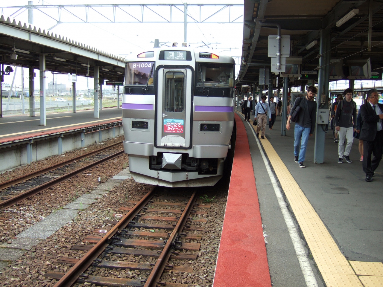 函館と新函館北斗の間を走る、新幹線アクセス列車。各駅停車と五稜郭のみ停車の2パターンがありますが、ディーゼルの普通列車と違って冷房が入り、通路も広いので、函館圏の列車の中では快適に利用できます。入り口に段差もありません。