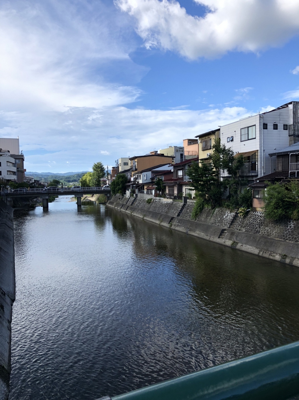 高山の旧市街を流れる宮川です。そのまできれいな川とは言えませんが、ところどころ橋がかかっており、周りにはおしゃれなレストランやカフェがあり、なかなかの風情の良さでした。見ていて癒されました。魚は見当たりませんでした。
