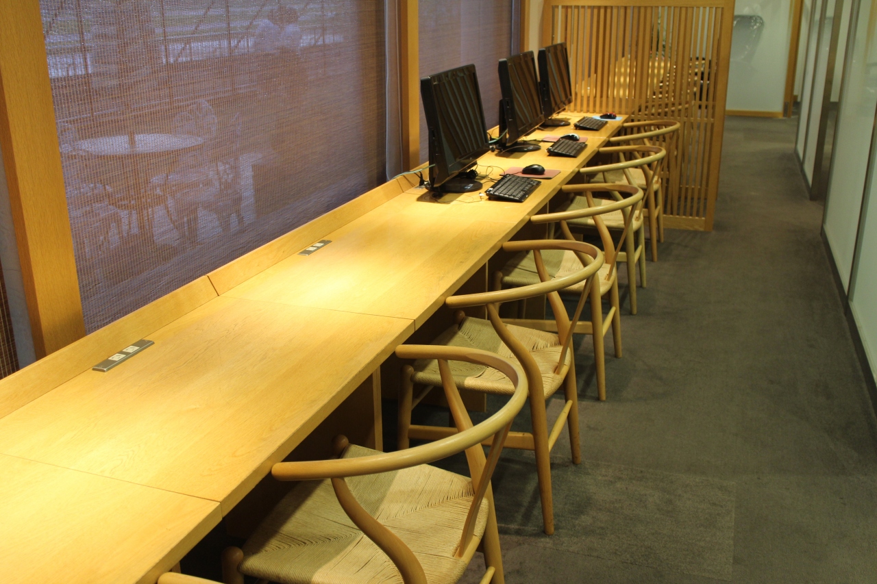 一般的なカードラウンジだが、室内はゆったりしていて落ち着く空間。一人の時はカウンター席が好ましいが、ソファ席、テーブル席もある。分煙されていて喫煙スペースもある。
