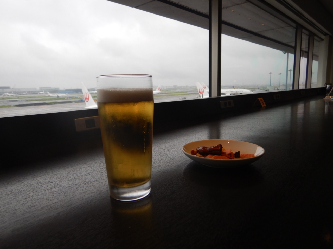 サクララウンジはよく冷えた生ビールが飲めるので重宝している。スーパードライは好きではないので、黒ラベルか一番搾りがあるのはありがたい。おかきでビールを飲みながら新聞を読んだりして、搭乗時間まで過ごすことにしている。