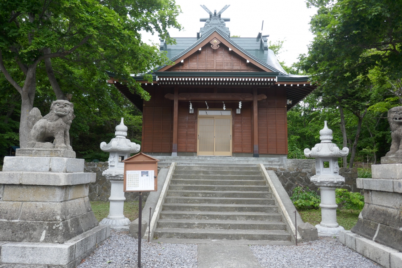 桃岩展望台から香深方面は向かう途中に神社があります。赤い大きな鳥居があるので、すぐにわかります。長い石段を上がって行くと、緑の中に、本殿が見えてきます。敷地が広いで、少しこじんまりと感じます。本殿の天井画には、礼文の花々が描かれていることでも有名な神社です。