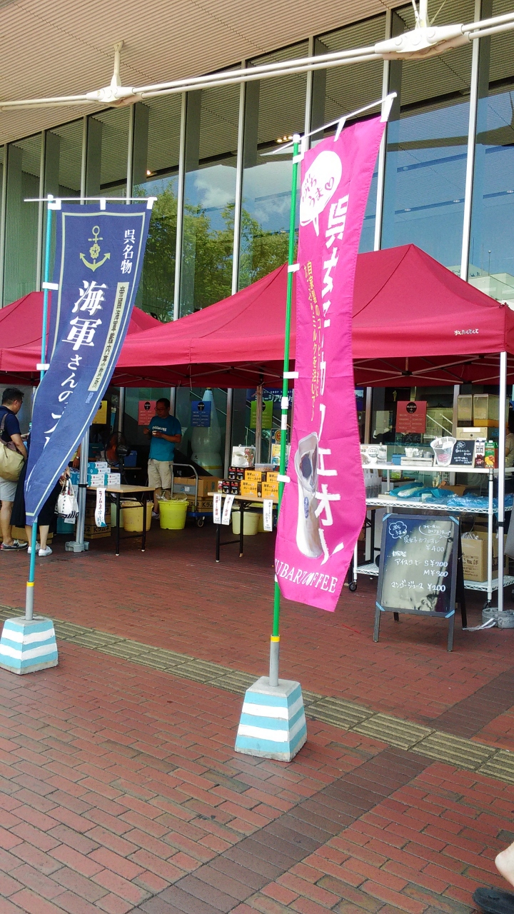 呉市の大和ミュージsアムの終戦記念日の前の日の8月14日に行ってみました。入り口にはいくつかのお店も出ていてアイスクリームやコーヒーなどが売っていました。帰省客なのでしょうか、多くの人で混雑していました。
