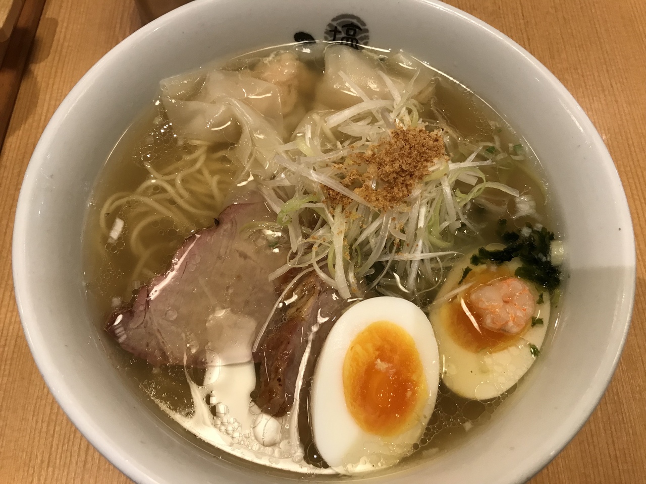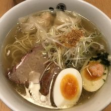 東京ラーメンストリートの中にある一軒です。塩ラーメンが名物のようで。お勧めメニューのひるがお盛り(1,150円)を券売機で買い、並びます。それほど時間がかからずに案内されました。