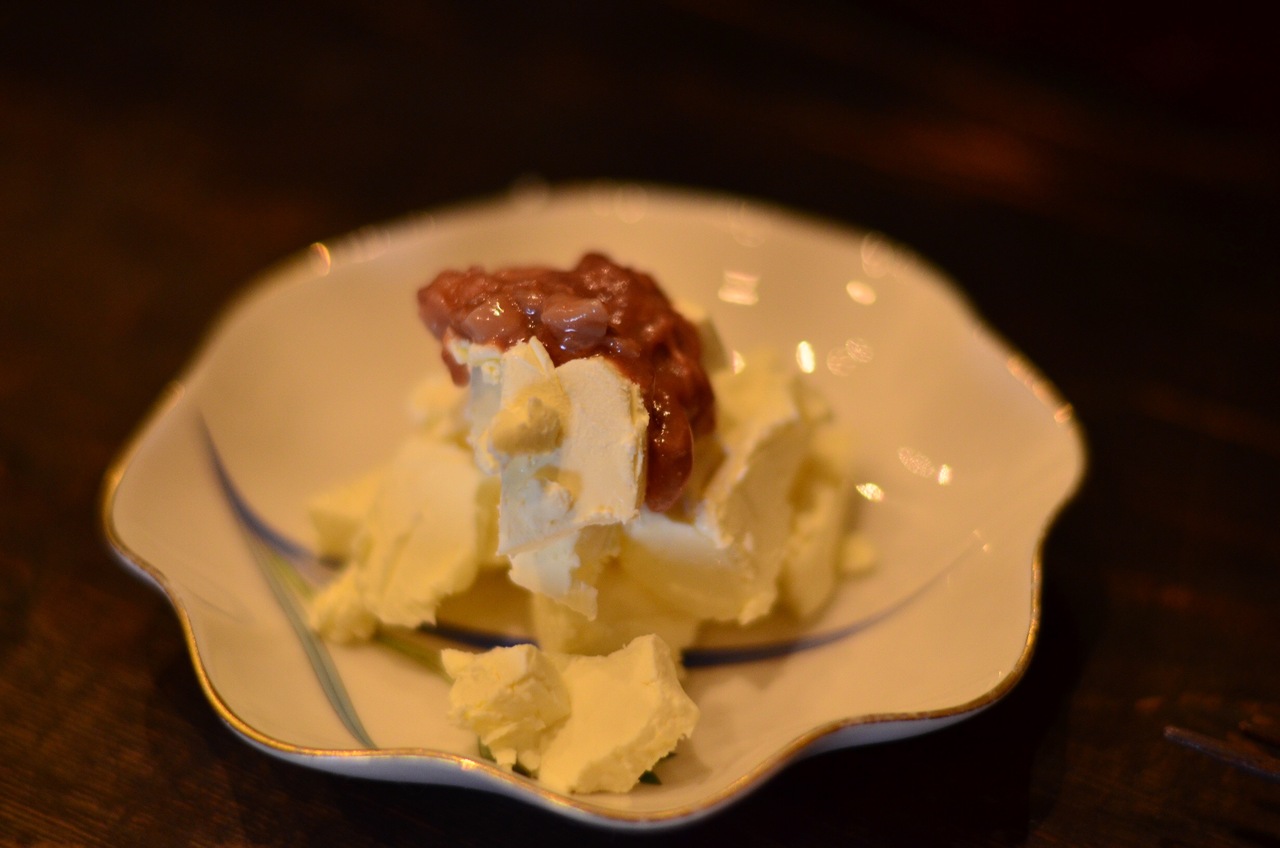 もろみとクリームチーズをアテに日本酒のシャーベットなど色々いただきました。