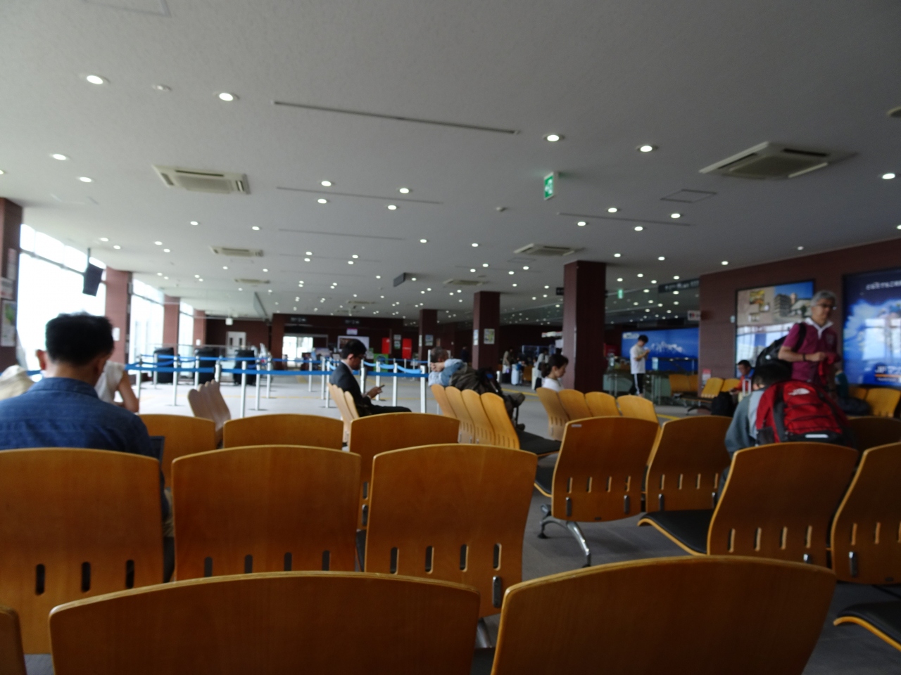 稚内駅から徒歩10分あれば着きます。近くに駐車場がありますが、夏時期は満車が続きます。係員に聞くと少し離れた場所に国外用駐車場があり、そこは使用していないので使っていいとのこと。助かりました。ターミナルは1Fで乗車券購入、2Fが乗船口になります。フェリーが近づいてくる様子はテンションが上がります。