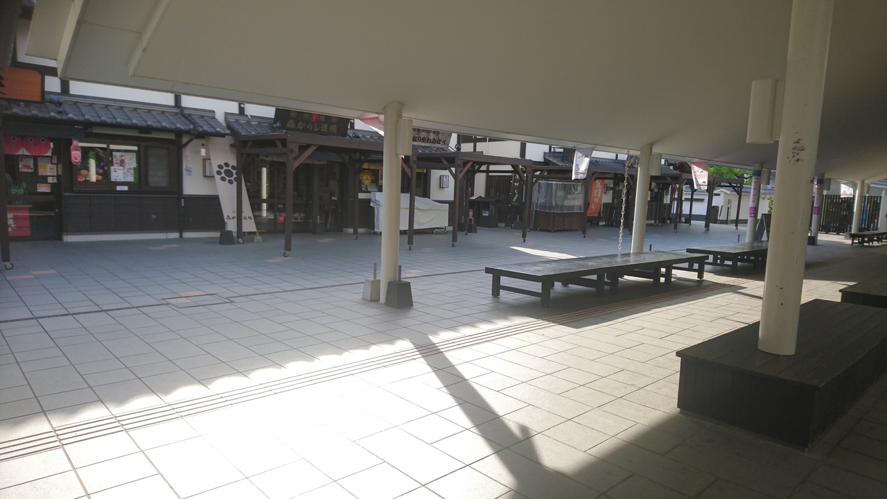 早朝から熊本城のそばにある城彩苑に行きました。もちろん店舗はまだ開いていませんでしたが、熊本の食文化や特産品を味わうことができそうな店がたくさんありました。桜の小路と呼ばれる一角には23店舗が軒を連ねており、食べ歩きを楽しめるそうです。