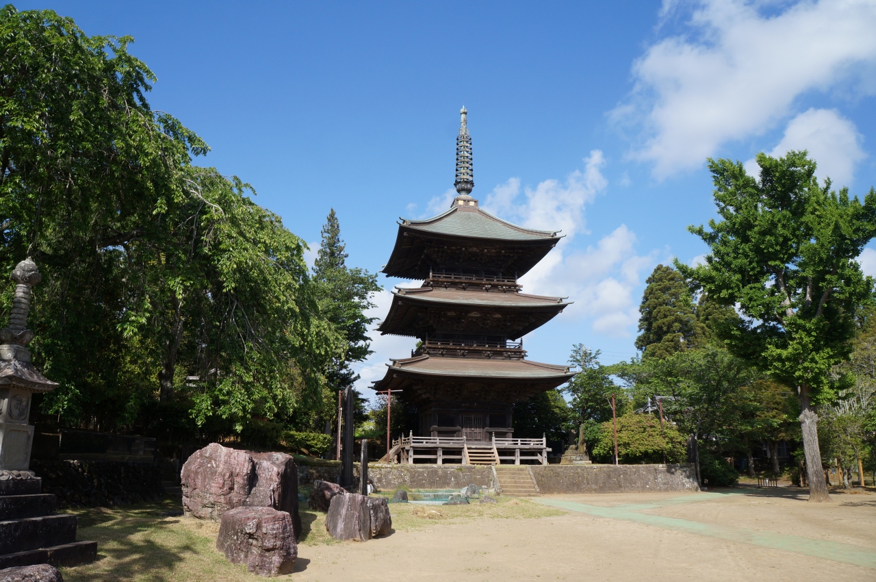 芝山はにわ博物館訪問の際に、すぐ近くにある芝山仁王尊に立ち寄りました。奈良時代に創建された歴史あるお寺で、江戸時代には賑わったということで、参道も残っていましたがは店舗はなくなり寂しい雰囲気でした。でも、境内には県の文化財に指定されているという三重塔をはじめ、趣のある山門など見所が多かったです。