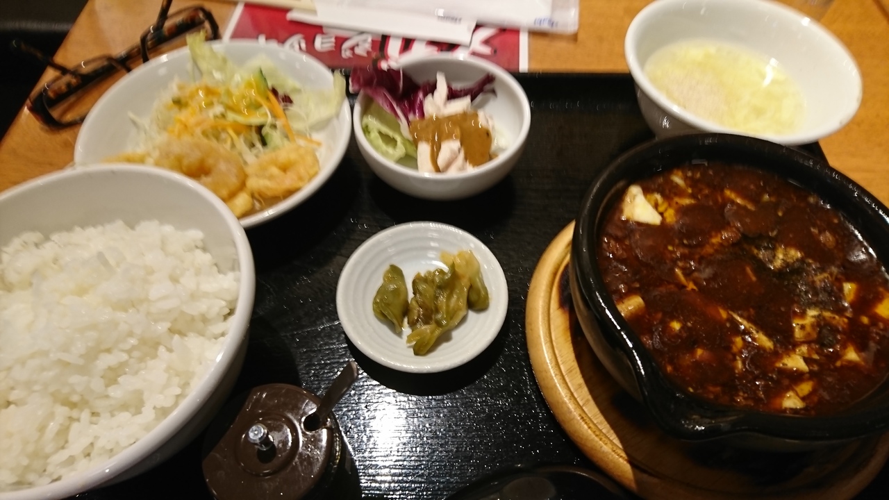 天満橋駅のしたにあるレストラン街にある中華料理店。麻婆豆腐のセットを頼んだが意外と辛味がなく子供でも食べれる料理だった。とはいえ、ラーユがついているので自分で辛味をつけることができる。この他ごま風味の担々麺を頼んだがこれは少し辛味がある。