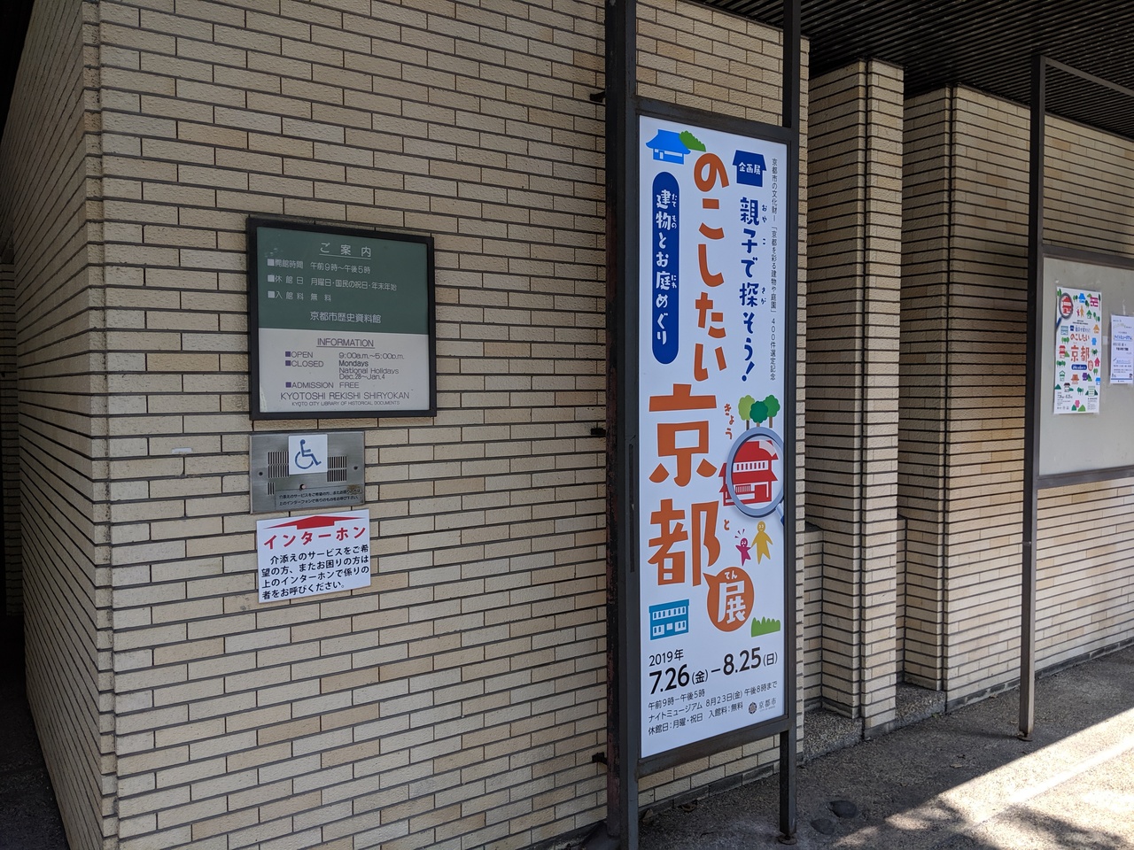 御所すぐ横、寺町通り沿いの資料館です。こぢんまりした展示スペースで職員さんもご自由にどうぞ~とまったりな応対。暑い日だったので涼みがてら京都市内に残る特徴的な建物(江戸~現代まで)や資料をパネルなども交えて見学させてもらいました