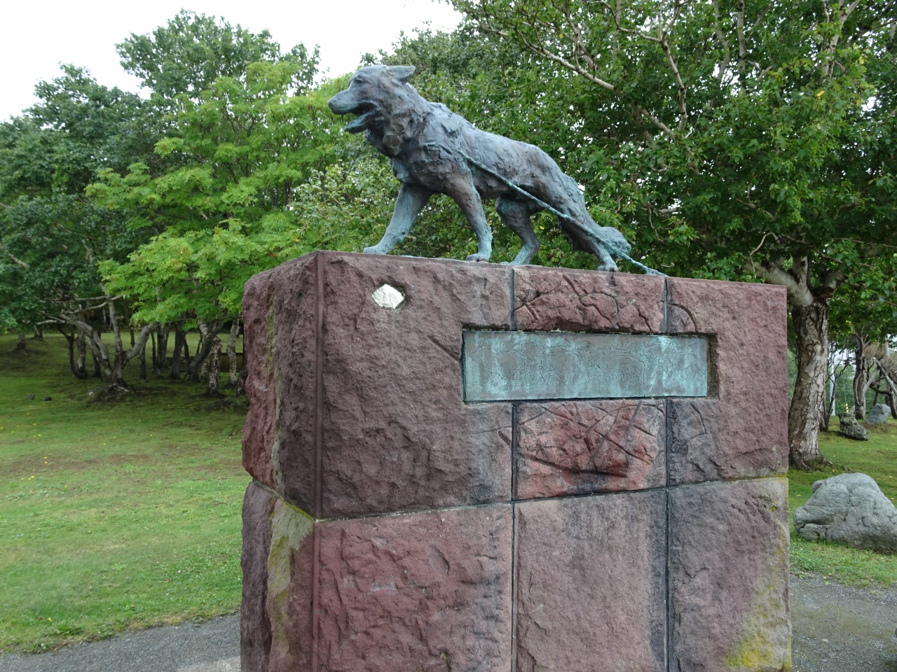 昭和31年、はじめて南極観測に参加する時に40頭の樺太犬が集められ稚内で8ヶ月訓練を受けました。困難な気象のなか犬ぞり隊は見事な活躍を見せたそうです。タロ・ジロで有名になりましたが、彼らの功績を讃え訓練場のあった稚内公園に碑が建てられたそうです。