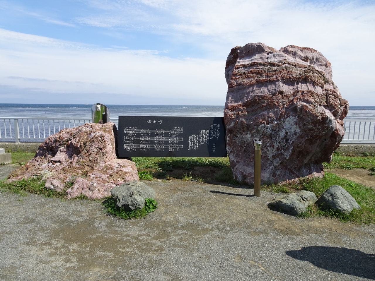 地元で活動していた吉田 弘さんとが作詞、舟村 徹さんが作曲して昭和51年にNHKみんなの歌で、ダ・カーポが歌った「宗谷岬」が全国的ヒットしました。以前は岬にくると、いつもかかっていた曲ですが、何十年ぶりにいたら歌碑に変わっていました。ここでこの曲を聴くと壮大で自然豊かな宗谷岬のイメージとマッチしていいです。