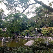 敷地内に桜花亭があり、1階のカフェからは庭園がよく見え、簡単な食事や飲み物がいただけます。メニュー料金は安めです。