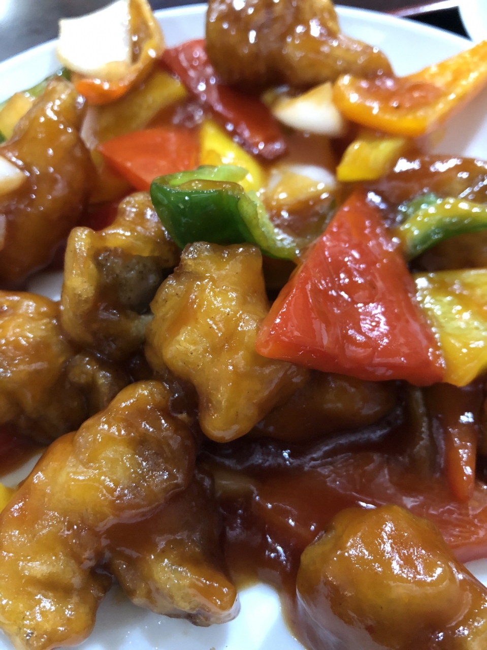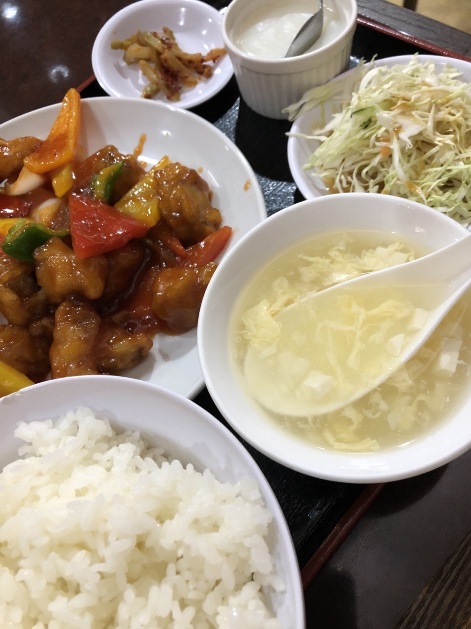 玉ねぎもピーマンも野菜の火の通りは三分、だから野菜はシャキシャキだ。でも豚肉、料理全体はアツアツで口の中の上顎を火傷しそう…絶妙に火をコントロールしている