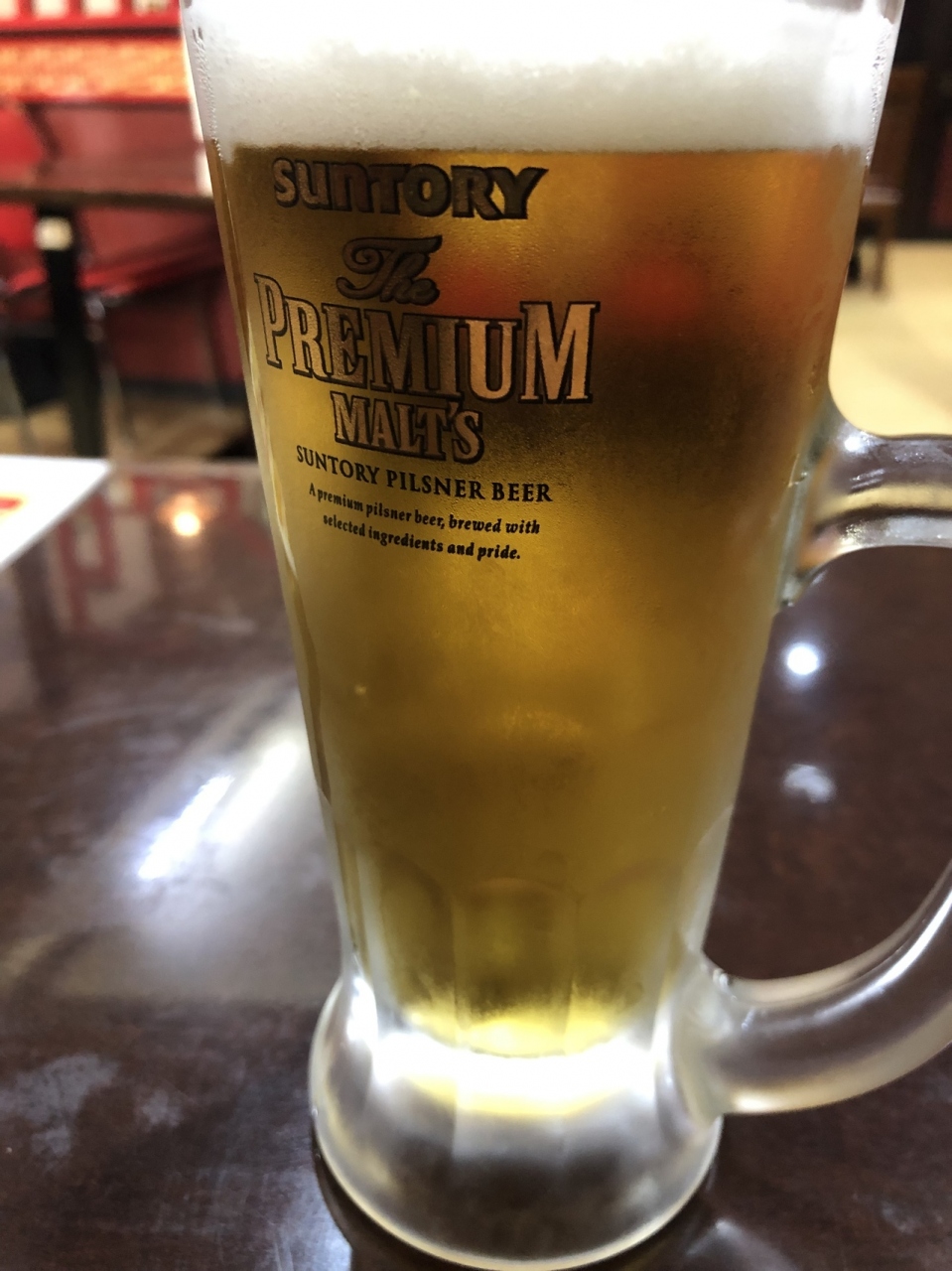 ランチの場合、ソフトドリンクは¥100-、生ビール中が¥200-…今日は日曜日なので、この生ビールももらった