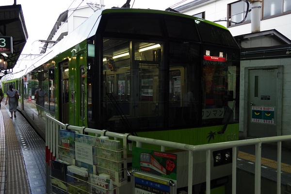 始発駅の出町柳駅は京都駅から直通バスがあります。鞍馬、貴船まではおよそ30分。窓へ向いた座席もあり、外の景色を堪能できます。私が乗ったのは2両編成のワンマン電車でそれほど人が乗れないものだったので、イベント時は大変そうだと思います。