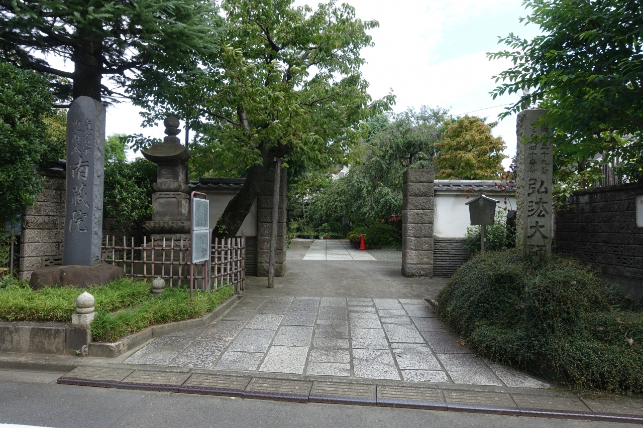 面影橋から北に向かった所にある真言宗豊山派の寺院。山門は屋根がないけど立派な門構えをしています。境内には石仏やお地蔵さまが並びほっこりする光景です。