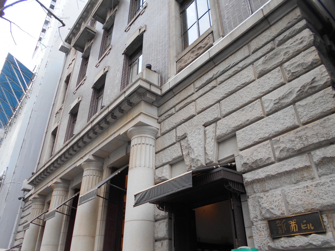大阪船場北浜の堺筋に面して建つ歴史的建造物で国指定登録有形文化財です。大正11年(1922年)竣工の鉄筋コンクリート4階建てのビルで元は報徳銀行大阪支店として建てられたそうです。今も重厚な佇まいですがお菓子の五感本館が入っています。この周辺は豪商が集まった区域でレトロなビルや屋敷跡が並んでいる大正、昭和の面影を残す街です。