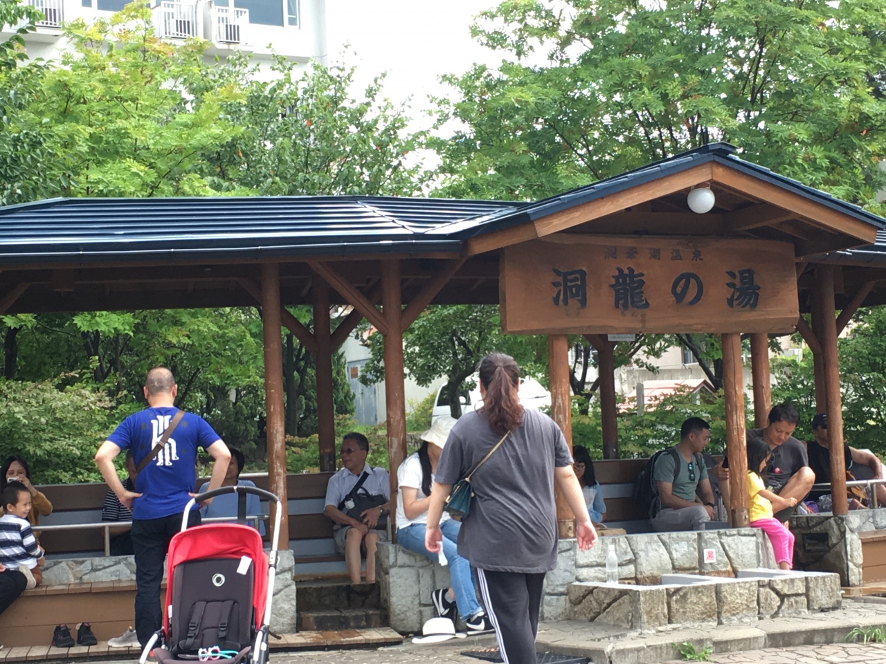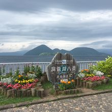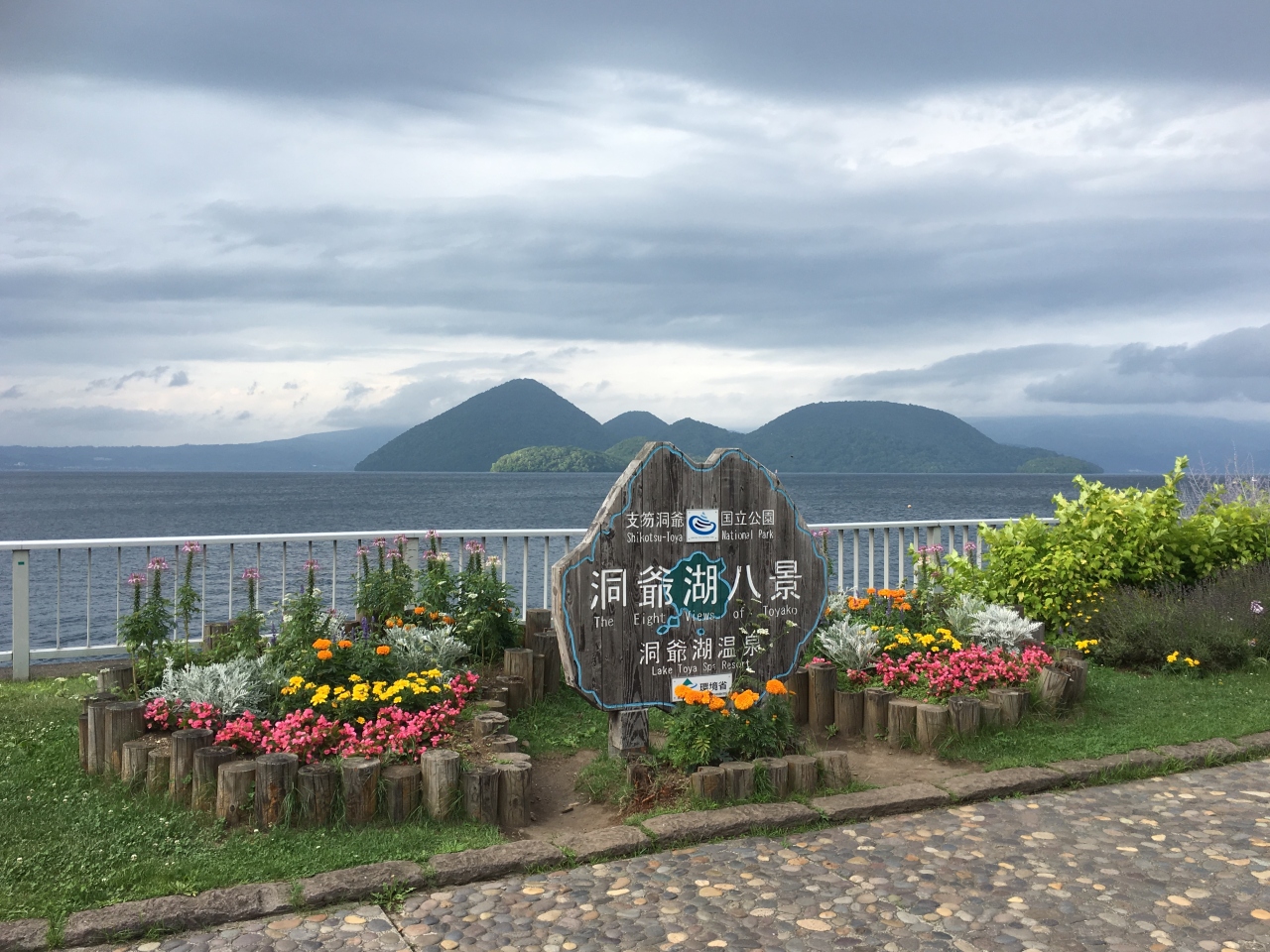 温泉街としてはちょっとしょぼくれた感じがしますが、洞爺湖畔沿いの公園が、きれいに整備されています。たくさんのオブジェが並び、ゆったり散策できます。足湯もありました。