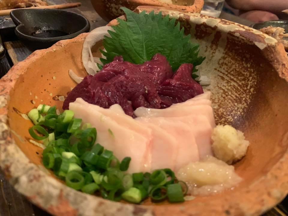 地鶏は炭火の香ばしい風味で美味しく、馬刺しも新鮮で美味しかったです。
