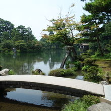 霞が池に架かる小さな石橋です。兼六園では、この虹橋を霞が池、徽軫灯籠(ことじとうろう)と共にフレームに収めるのが最もフォトジェニックな風景として人気があります。