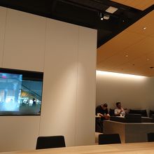 羽田空港到着ロビーにあるカードラウンジ。各種ゴールドカードがあれば無料で使えます(搭乗券も必要)。アルコール類はありません(ビールは670円で有料)が、コーヒー、紅茶、お水、ジュースのサービスがあり、比較的静か静かなので短時間であれば十分くつろげます。また、机も広く、充電も可能なので、パソコンでの作業も可能。なかでは、各社のカードのCMが流れています(無音)。私はバスの待ち時間によく利用しています。