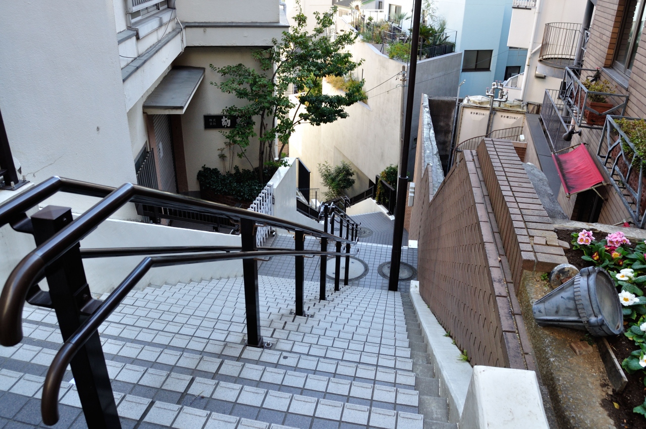 神田明神のすぐ近く(南東側)にある階段が、明神女坂と名付けられています。この先道があるのか?と思うような細い路地を進むと、その先に明神女坂があります。とても細い道(階段)で、せいぜい2人くらいが並んで上り下りできるくらいの幅しかありません。あまり観光地としてお勧めはできませんが、神田明神のすぐそばにありますので、どうせなら見てもいいのかな?と思うようなレベルです。階段はとても綺麗に整備され(最近整備されたのかな?と思うくらい綺麗でした)ていました。