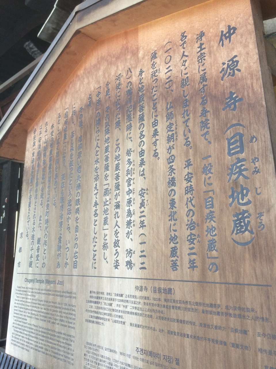 大通り沿いの商店が並んだ場所にあったので、この寺だけ少し異様な感じでした。境内にはたくさんの千羽鶴があり、また袋ごと何かを奉納しているのか、2か所に奉納した袋が積んでありました。目やみ地蔵とも呼ばれているようで白い提灯がたくさんぶら下がっていました。