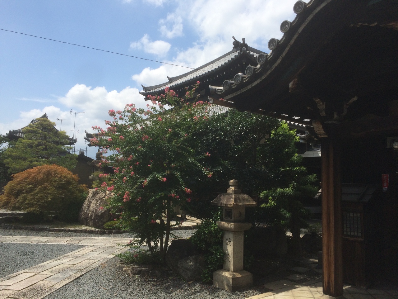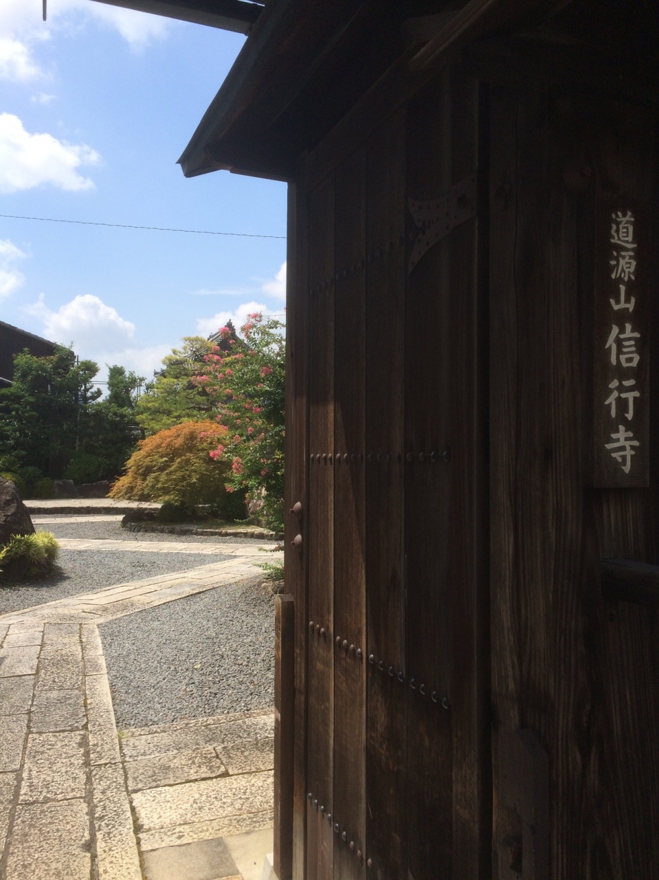観光寺院ではないので、門から中を覗きました。門は木造りの古めかしい門で由緒ありそうな寺でした。境内な小さな砂利が敷いてあり、本堂までは石の道が伸びていて良い雰囲気で木や草も綺麗に整備されていました。本堂は屋根が大きな瓦屋根でした。