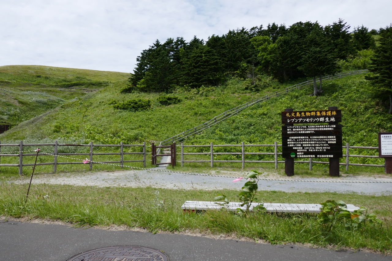 6月末に礼文島を訪れました。地元の人からは「もう季節は終わっているよ」と言われていたのですが、レンタカーを借りて礼文島を旅していたので「澄海岬」を観光した後、「スコトン岬」に行く途中、レブンアツモリソウ群生地に立ち寄ってみました。やはり地元の人が言う通り、季節は終わっており、花咲く姿は見られませんでした。遊歩道の入口も閉ざされており、開花を見るためには遅くとも6月中旬までに訪問する必要がありそうです。