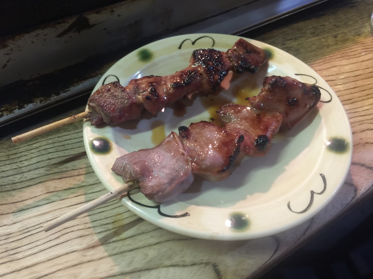 先ずは生ビール!普通に生ビールとたのむと大生が出てきます。そしてもつ焼きに焼鳥!ここのもつ焼きは美味すぎる!